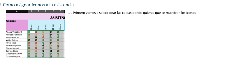 1. Primero vamos a seleccionar las celdas donde quieras que se muestren los íconos.