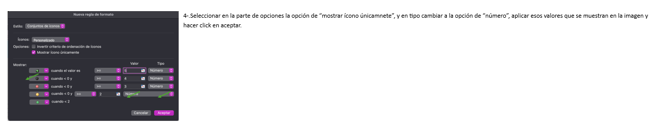 En la parte de estilo tenemos que seleccionar la opción de “conjunto de iconos” y hacer clic en aceptar